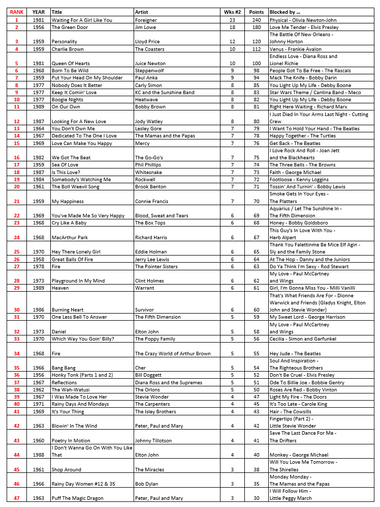 The 47 biggest #2 Hits of The Forgotten Hits Era, 1955 - 1989 ...