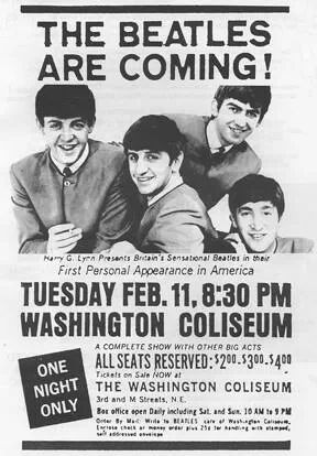 2/11/64 – The Beatles make their first live concert appearance in US, at the Washington Coliseum in Washington, D.C. Washington, D.C. was selected because this is the city that first broke their US breakthrough hit “I Want To Hold Your Hand.” “Please Please Me,” released a year ago, failed to chart … but (as we all know) WAS first played on the radio by Chicago DJ Dick Biondi … the first disc jockey to ever play a Beatles record in America